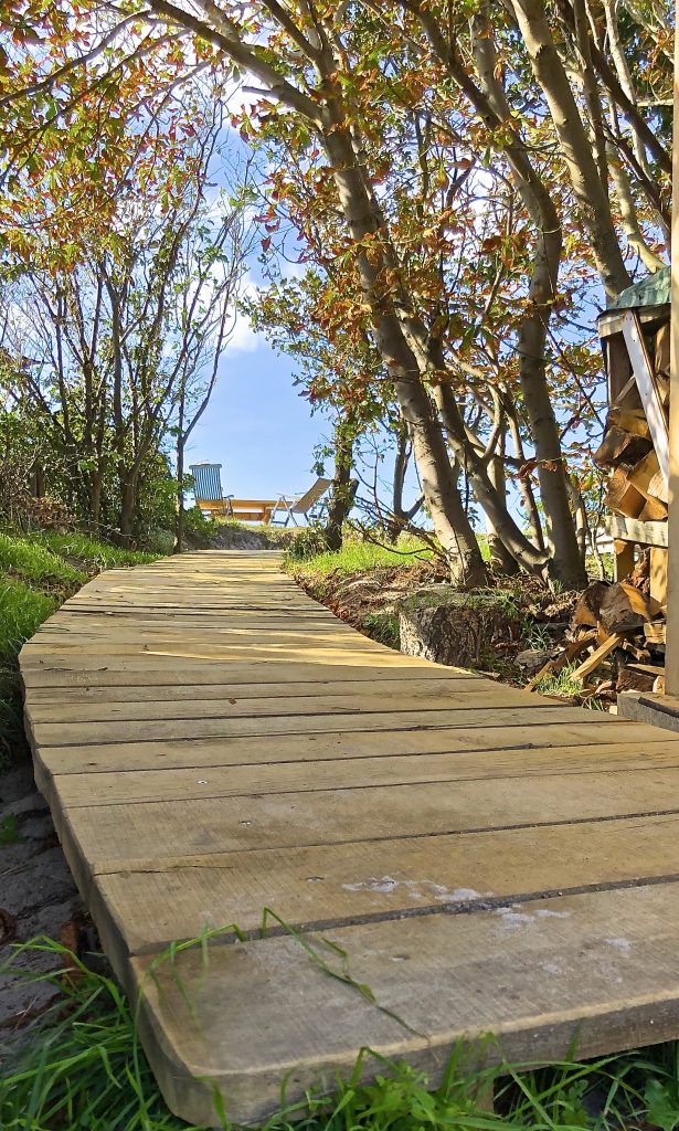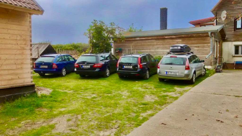 Mit dem Auto bitte die linke Grundstückshälfte benutzen. Siehe Foto mit 4 Parkplätzen. Bitte alle Mitreisende auf die Hausregeln hinweisen und nicht auf die Düne laufen.