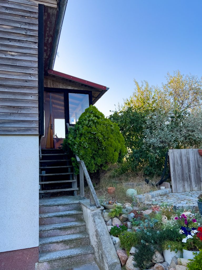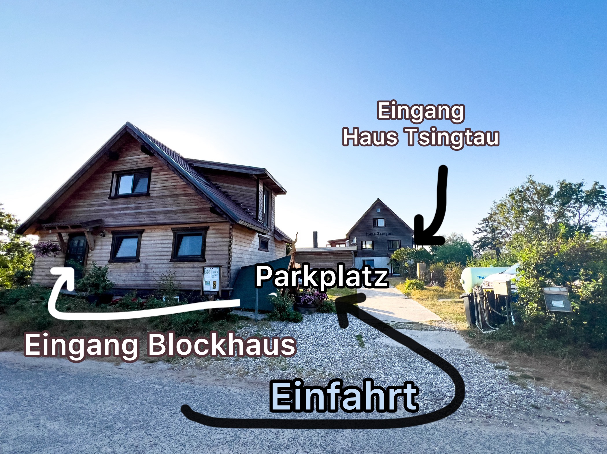 Am Haus Tsingtau bitte nicht an der Tür im EG klopfen. Der Zugang geht über die Außentreppe rechts am Haus.