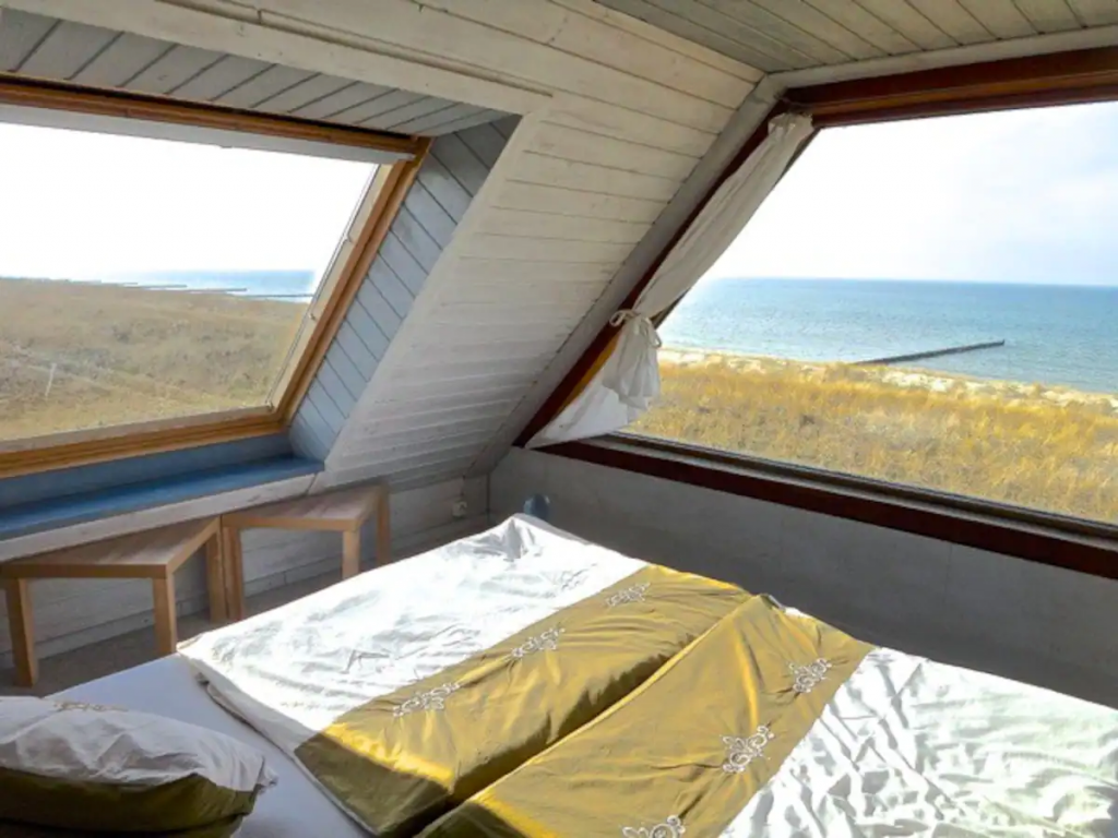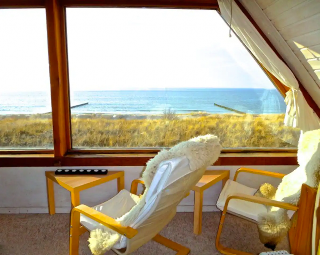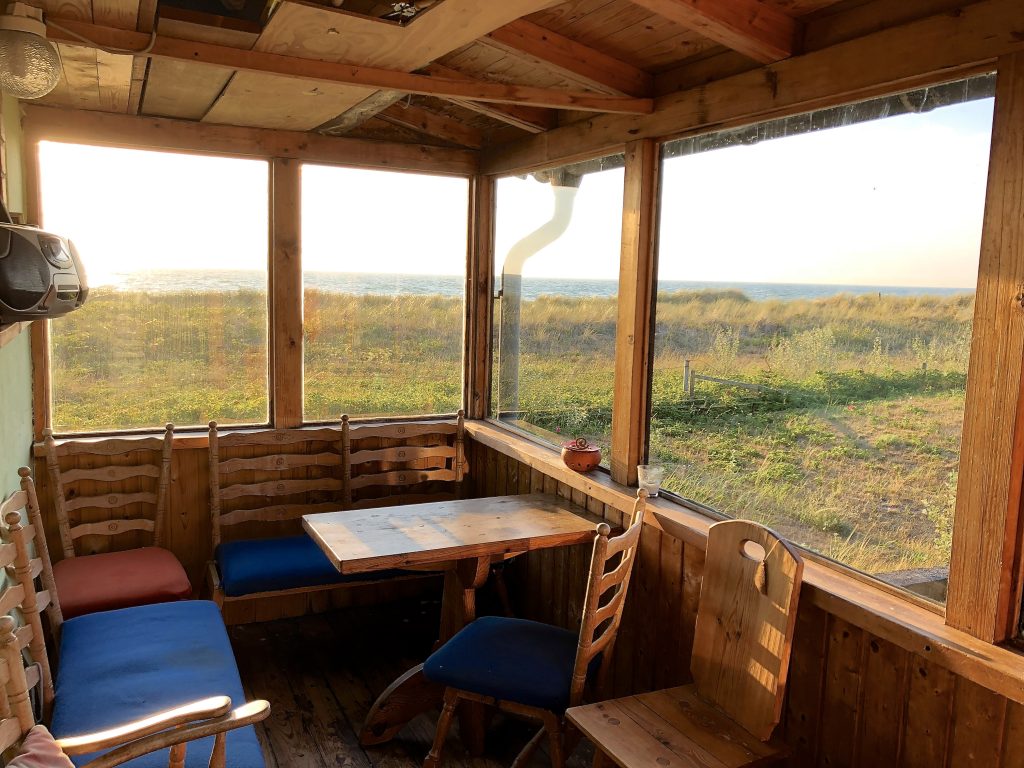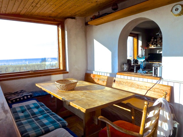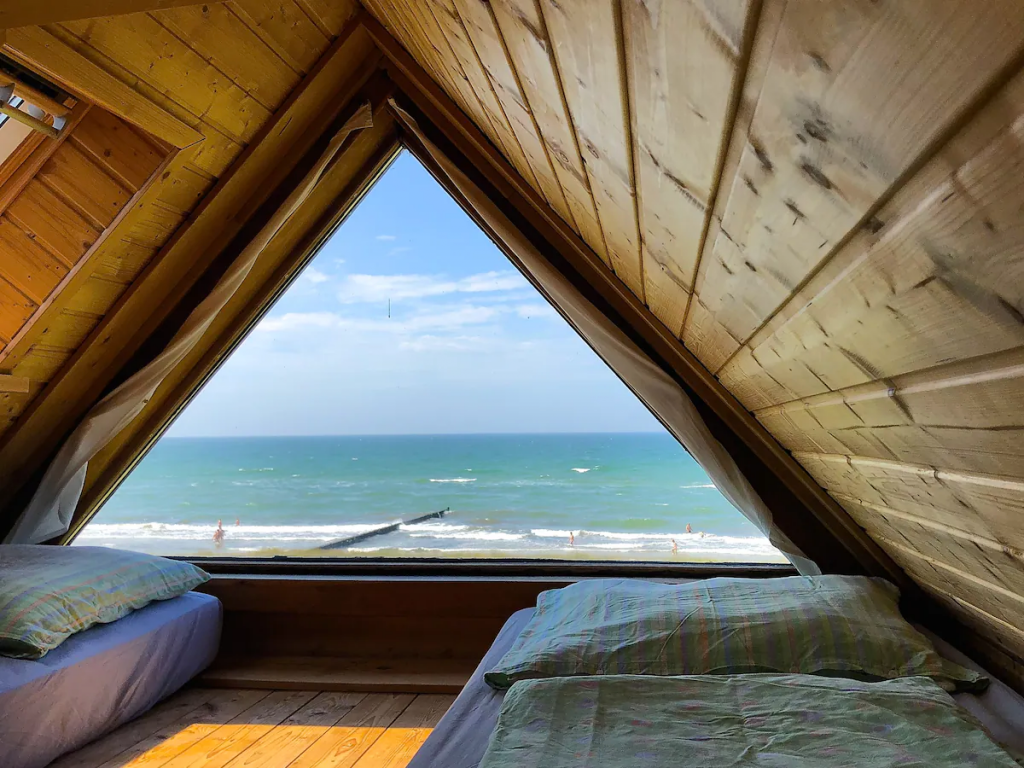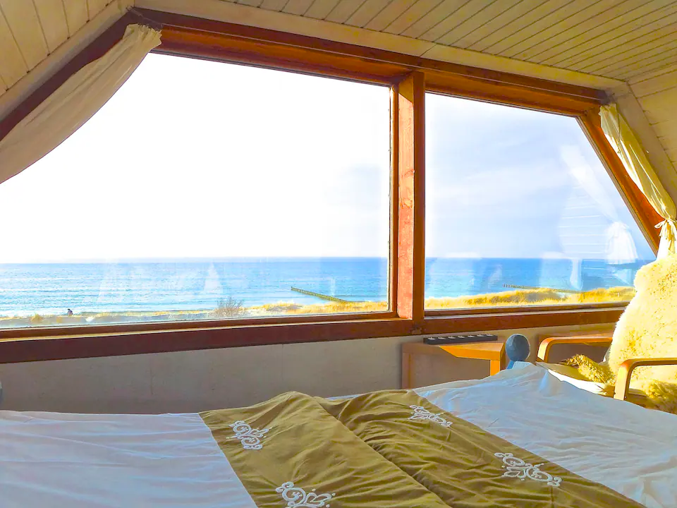 Das Seezimmer 1 (für max. 4 Personen) befindet sich im Haus Tsingtau direkt auf der Düne. Ihr habt euer eigenes Zimmer mit Panoramafenster und eigenem Bad. Die Räume darunter in der mittleren Etage, mit voll ausgestatteter Küche, könnt ihr mit uns und den anderen Gästen gemeinsam nutzen. Dort habt ihr einen eigenen Kühlschrank.