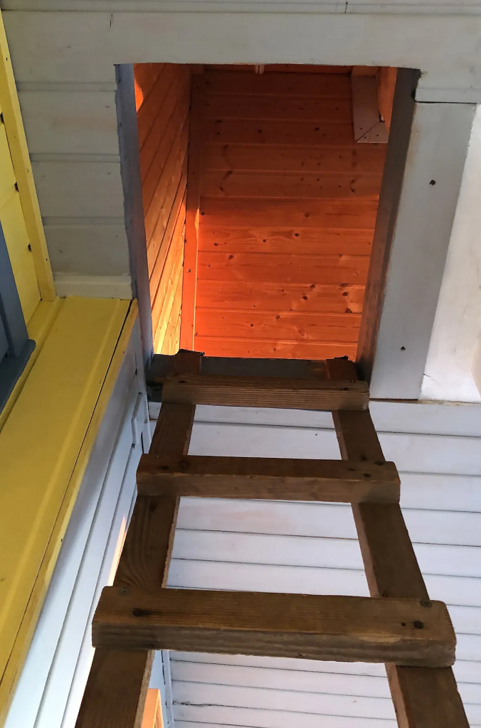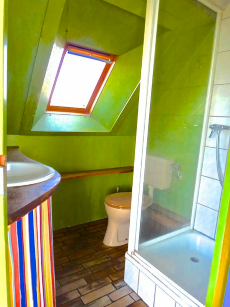 Über dem Zimmer befindet sich ein Spitzboden mit zwei Matratzen. Hier können bequem zwei Kinder schlafen – oder auch Erwachsene. Jedoch kann man in diesem Raum nicht stehen, er ist wirklich nur zum Schlafen da. Die hölzerne Leiter führt in diesen Schlupfwinkel. WICHTIG! Hier bitte kein offenes Licht (Kerzen) verwenden. Weitere wichtige Informationen bezüglich unserer Hausregeln findet ihr hier.