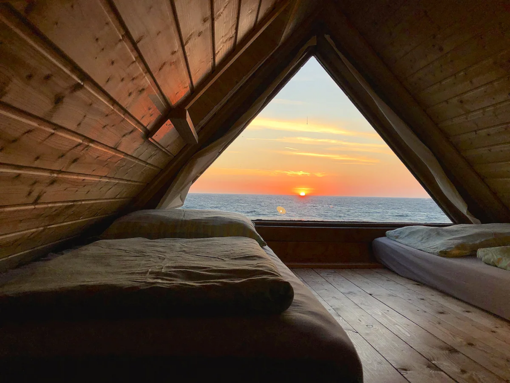 … erwarten euch ein großes Bett, euer eigenes kleines Bad, der Blick aufs Meer und der Sternenhimmel bei Nacht.