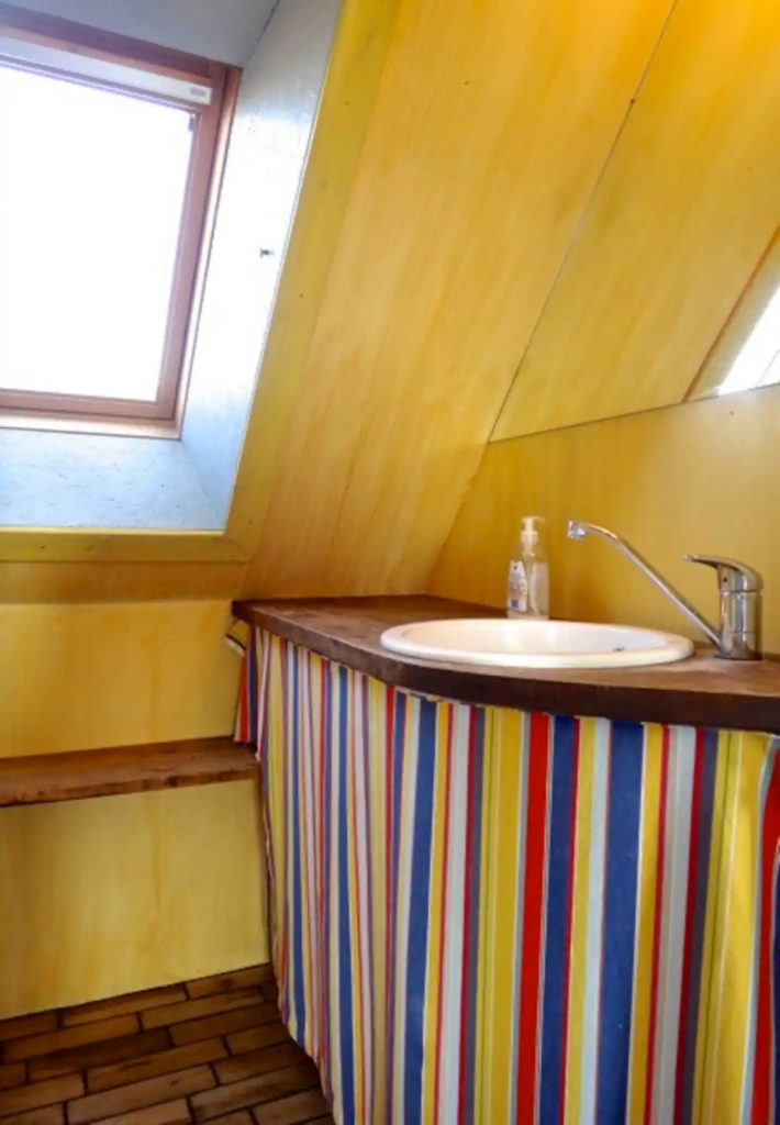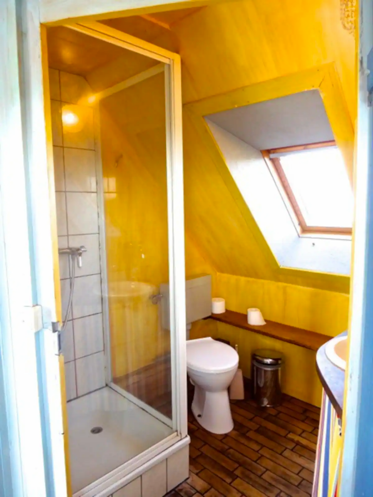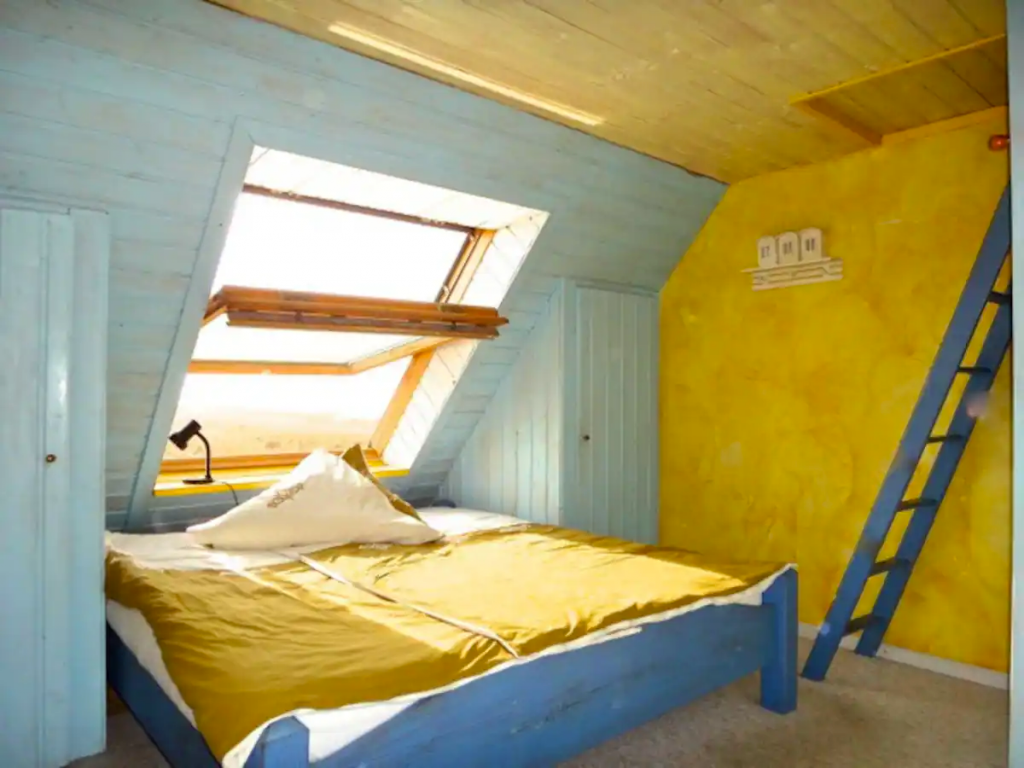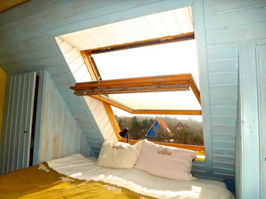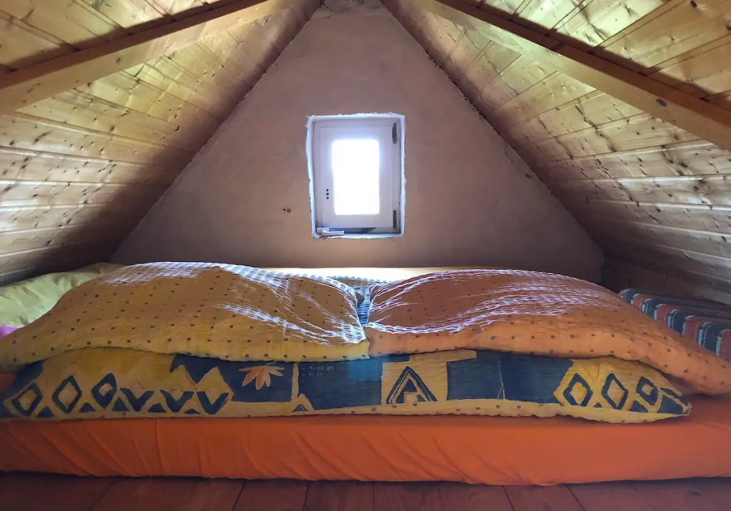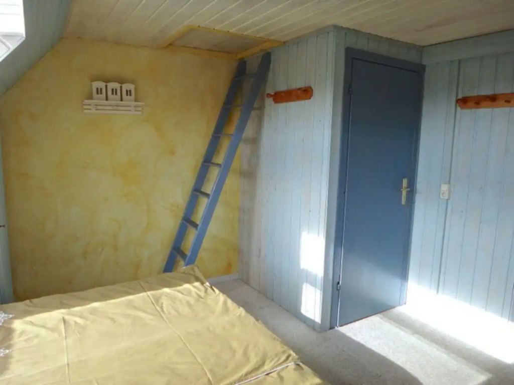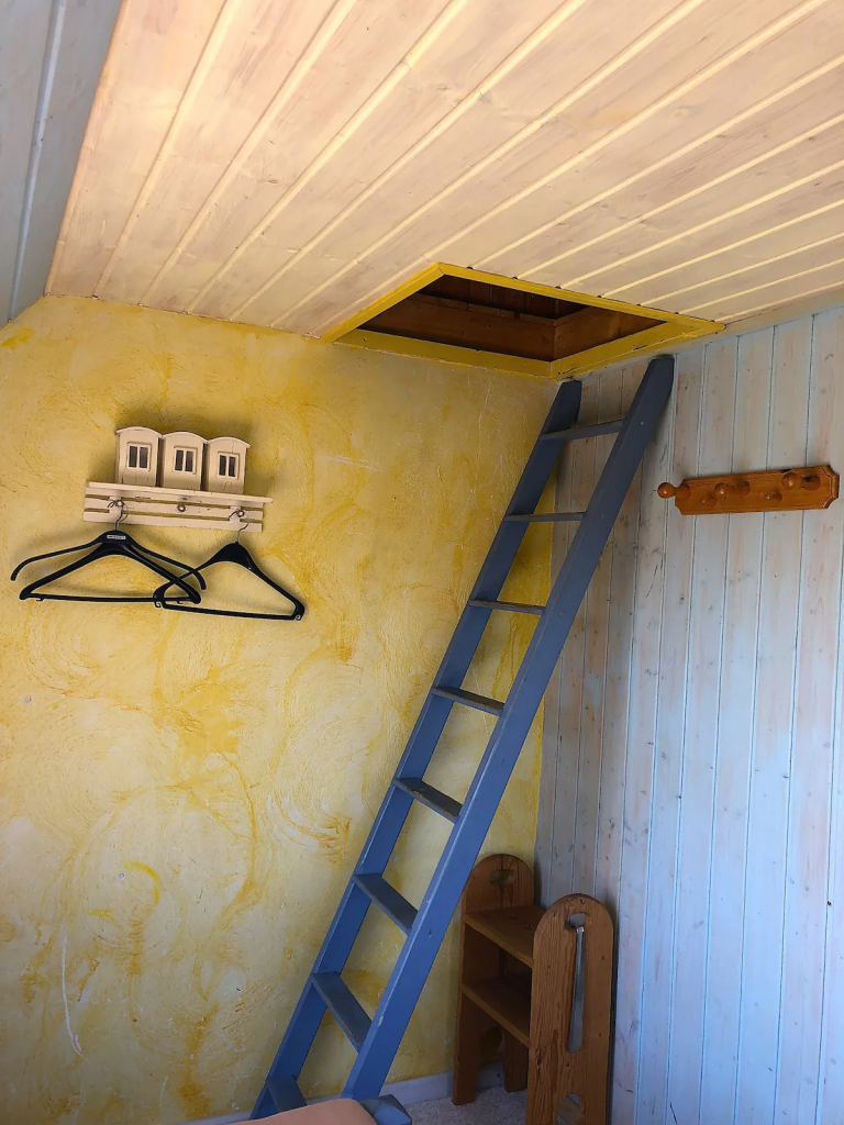Über dem Zimmer befindet sich ein Spitzboden mit zwei Matratzen. Hier können bequem zwei Kinder schlafen – oder auch Erwachsene. Jedoch kann man in diesem Raum nicht stehen. Er ist wirklich nur zum Schlafen da. Die hölzerne Leiter führt in diesen Schlupfwinkel. WICHTIG! Hier bitte kein offenes Licht (Kerzen) verwenden.