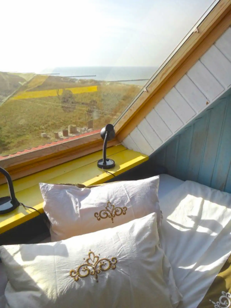 Das Seezimmer 2 (für max. 4 Personen) befindet sich im Haus Tsingtau direkt auf der Düne. Ihr habt euer eigenes Zimmer in Boddenrichtung und ein eigenes Bad. Die Räume darunter in der mittleren Etage, mit voll ausgestatteter Küche, könnt ihr mit uns und den anderen Gästen gemeinsam nutzen. Dort habt ihr einen eigenen Kühlschrank.